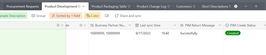 - When the PIM Create Status is Created, the data will sync to PIM auto.