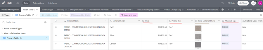 - Update the Price Tier formula in Finish Table in Halo Base.