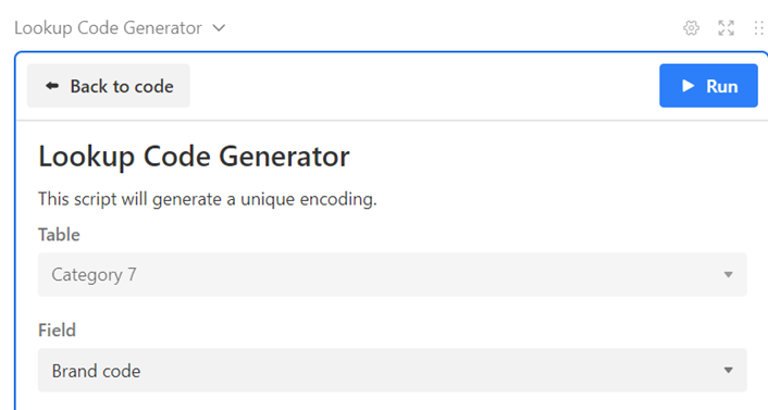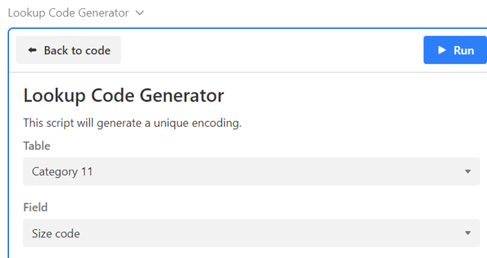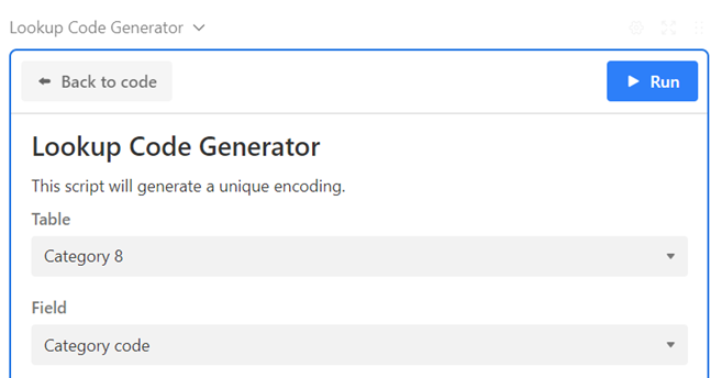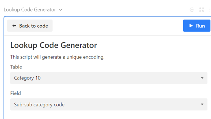 - Select Category 10 table and Sub-sub Category Code field. Click Run.