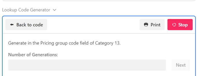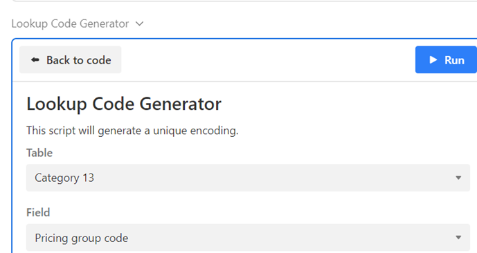 - Select Category 13 table and Pricing Group Code field. Click Run.