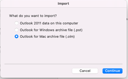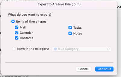 7. Select the format(Windows: pst, MacOS: olm), click “Continue”.