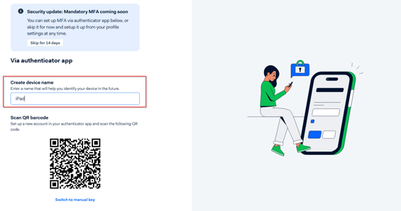 7, Choose 'Scan a QR code' and then goto webpage as below and input a device Name for this Authenticator and scan below QR code to start the bundling.