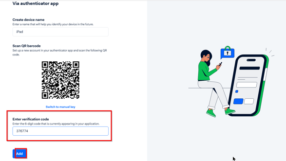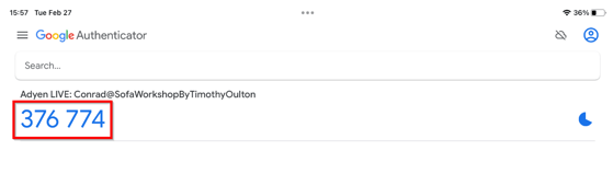 8, After scanning, there will be a code appears on the iPad/iPhone Authenticator screen: