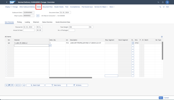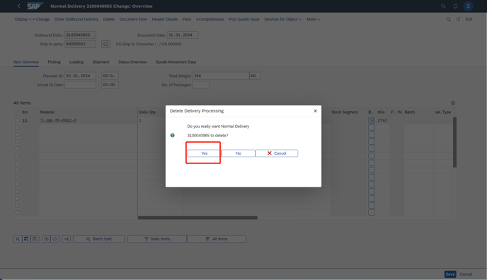 2. Since this order has been delivered with DN. Next, cancel DN.
