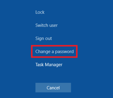 2, Choose Change a password. PS: new pwd must be 10 characters and cannot include your name, recommended to use: numbers + upper characters and low key characters+ special keys.