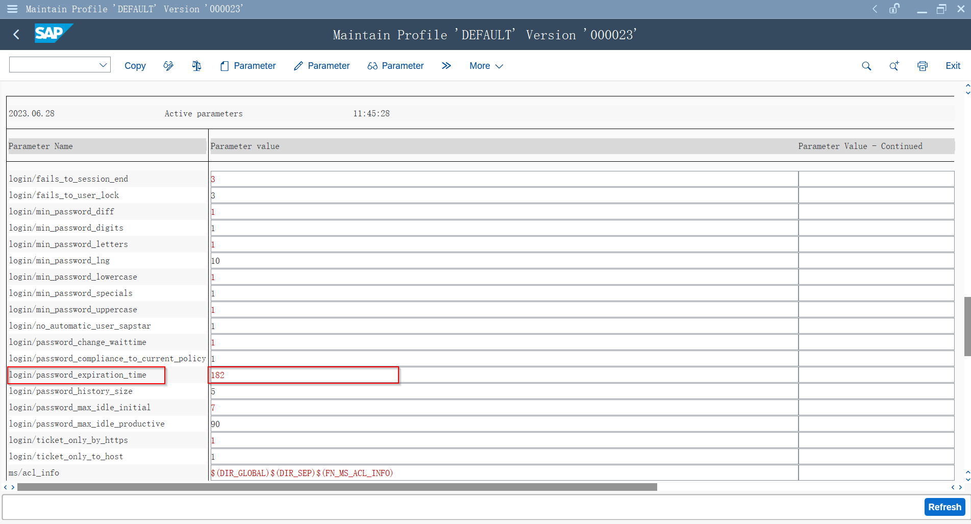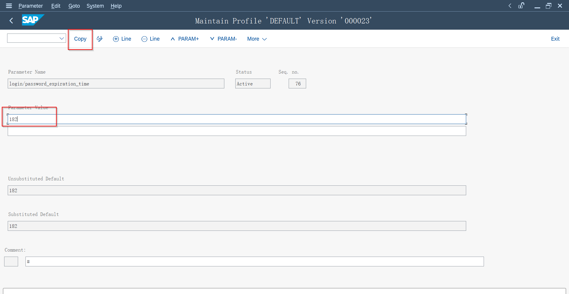 4, RUN the T code '/nrz10' to modify the parameter value: