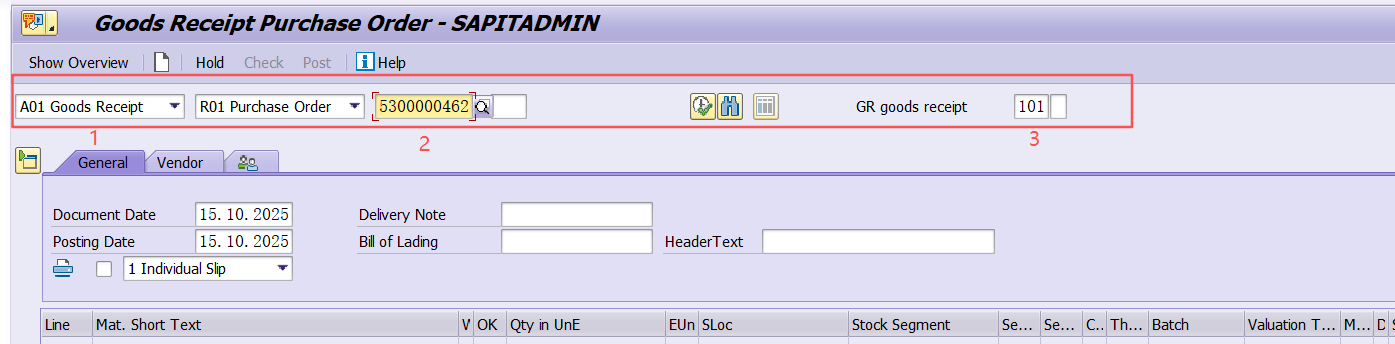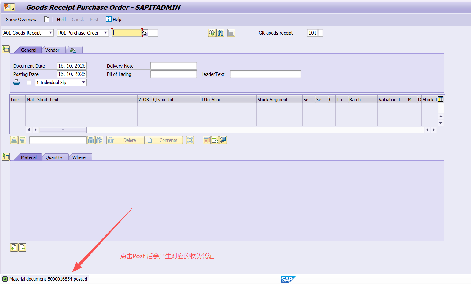 选择A01 Goods Receipt, 放CCSTO PO,GR goods receipt = 101, 然后“enter”