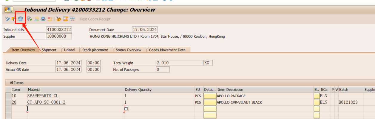 How to delete or remove inbound delivery Go to VL02N Double click line item Remove batch if have data, if no can skip this step . Go back and save If need to delete whole DN, just click "Delete" and "Save"