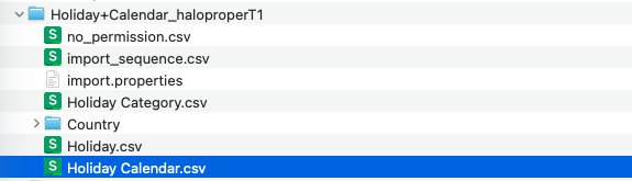3. after un-zip, get the file as below - Holiday Calendar.csv