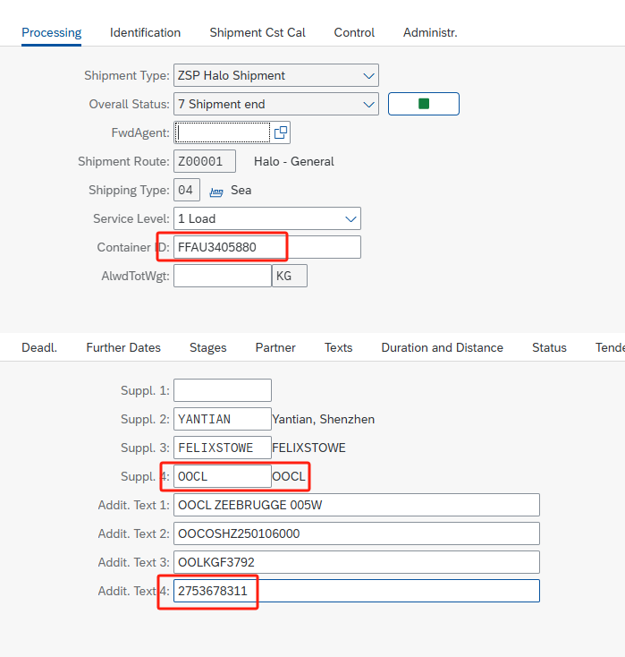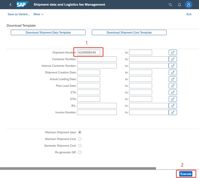 1. Click on the link below to open the "Shipment Data and Logistics Fee Management" page, enter the shipment number, and click the "Execute" button.
