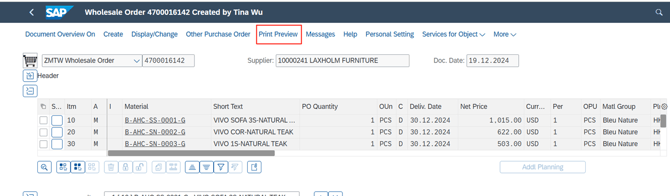 For PO standard printout, you may follow below procedure, if you want to print out as PDF file, please use by Fiori instead of GUI version. (如果要下载成为PDF 文档文件,请用网页版本)