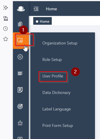 1, Login UX with SYSTEM ADMIN ACCOUNT, go to Menu side bar and select USER PROFILE,