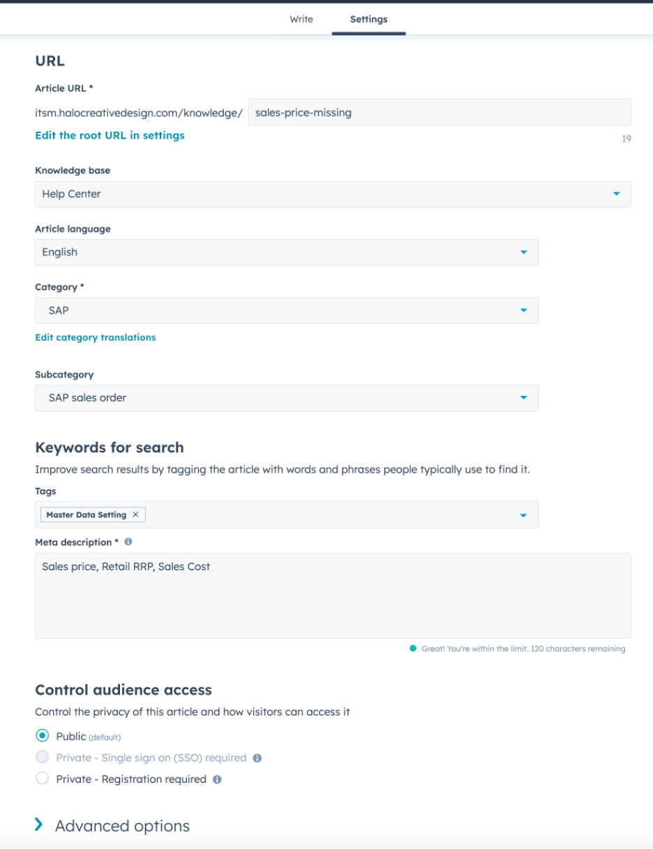 Meta is IMPORTANT. It helps other people to FIND your article in the base when they use Search. Put here the words that describe the Issue. Imagine that you are searching in Google. Which words would you use to get the answer?