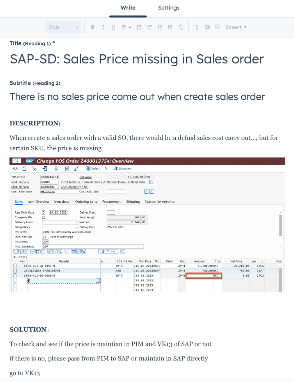 - Add the detailed solution. Always ask yourself: “Does every word here lead the reading person to solution of the issue?” If the answer is “yes” – you’re on the right way.