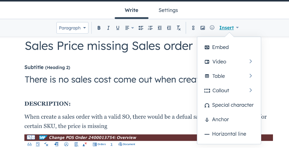 - Add the description of issue. Do not add anything that does not add value to the article. Ask yourself: “Does this text clearly describe the issue to a person that knows nothing about it?”