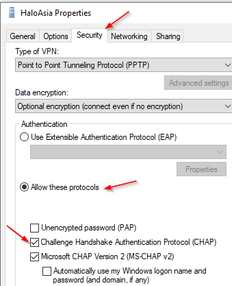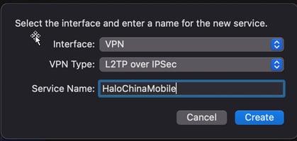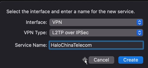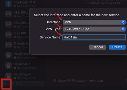 Interface: VPN VPN: L2TP over IPSec Service Name: HaloAsia