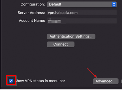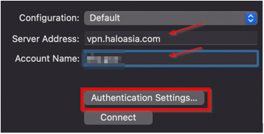 Server Address: vpn.haloasia.com Account Name: Window login account, for example: hss\firstname.lastname or haloasia\firstname.lastname