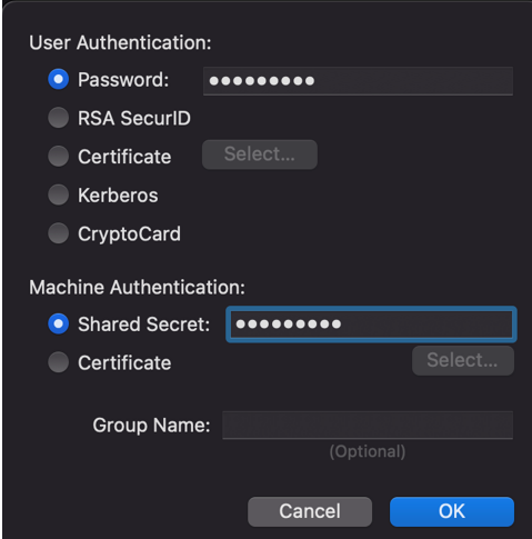 Password: Window login password Shared Secret: OIS#17hk Then hit “ok”.