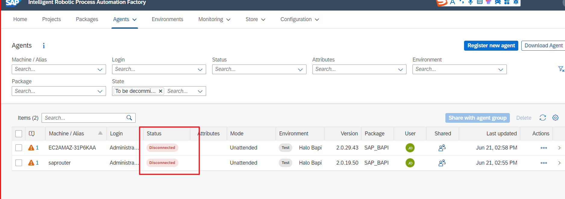 IRPA Agent Disconnect Issue Handling