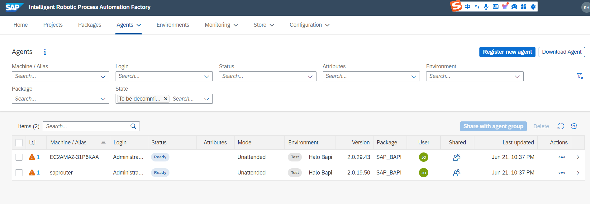 3. If restart sucessfully, IRPA agent will turn to ready or idel status