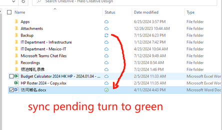 - Make sure all the files and folders that need to be moved are turned green in OneDrive folder.