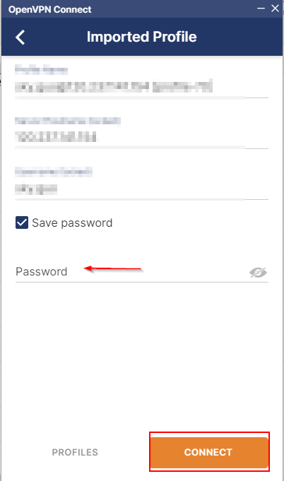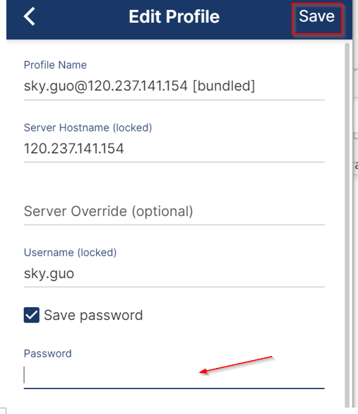 6, Tick the Checkbox ”save password” and input the password, click “connect”.
