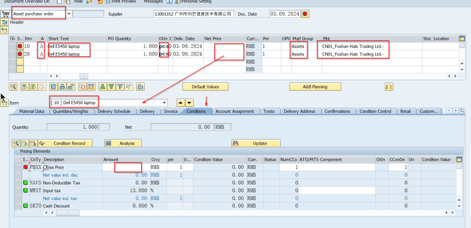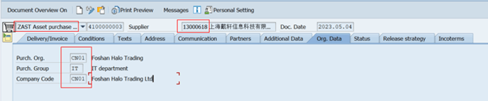 2.2 Acct Assign.Category: A, Mat.Group:Z13, Plant: choose one plant under purchasing company Base on your demand.