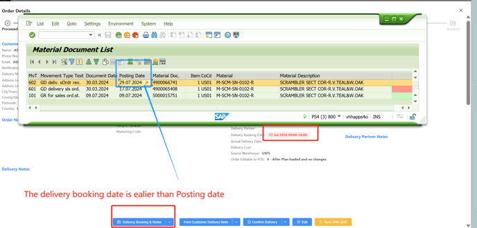 (The delivery booking date is earlier than stock GR posting date)