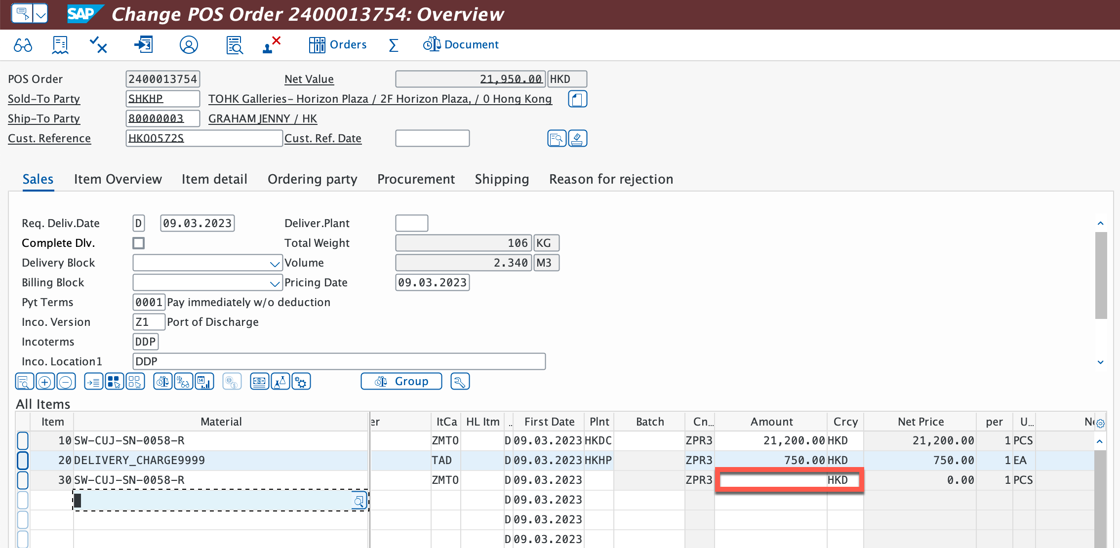 When create a sales order with a valid SO, there would be a defual sales cost carry out..., but for certain SKU, the price is missing