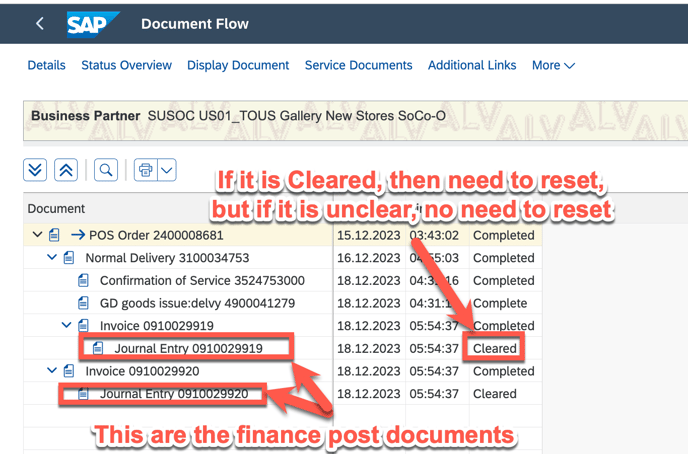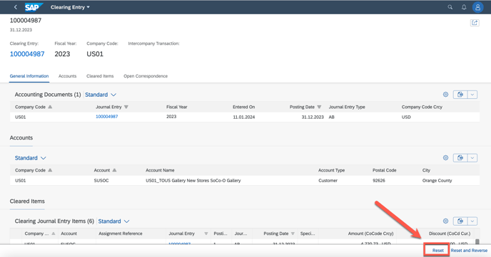 4. after picked the clearing doc, go to app - Reset Clearing Document