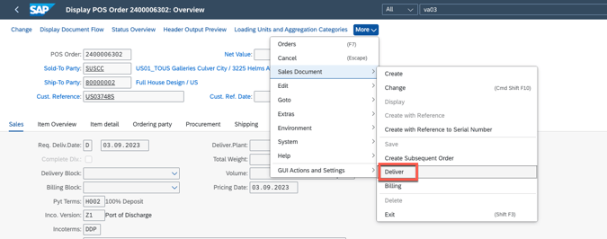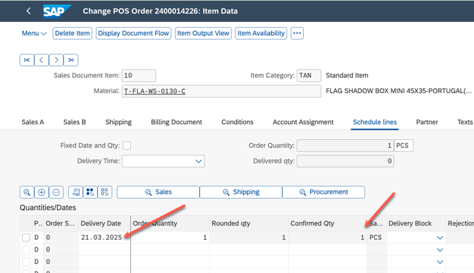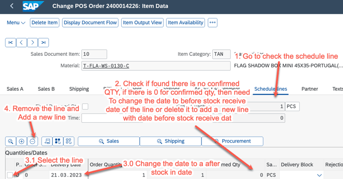 3.3 if there is stock already, make sure the delivery date is after stock receive in date, go to below view to change