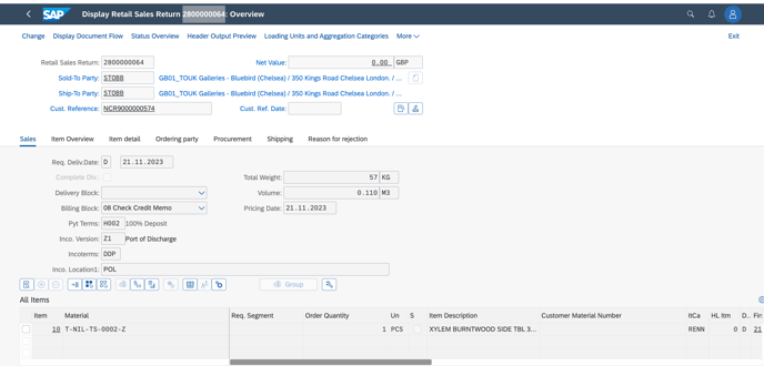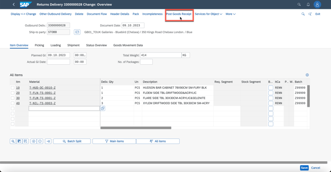 SAP-SD: NCR Return Delivery note PGR - Post Goods Receipt