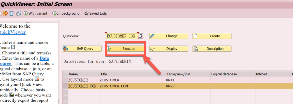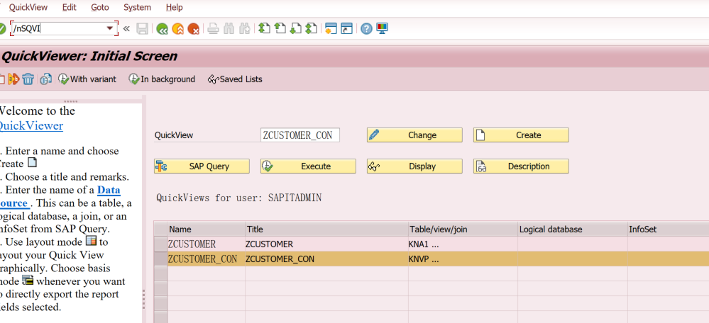 SAP-SD: Extract Customer and AM extract customer and AM from system 1. Log in SAP 2. go to T-code SQVI and select Quick view ZCUSTOMER_CON Press excute select variant FOR CONRAD Execute download the data