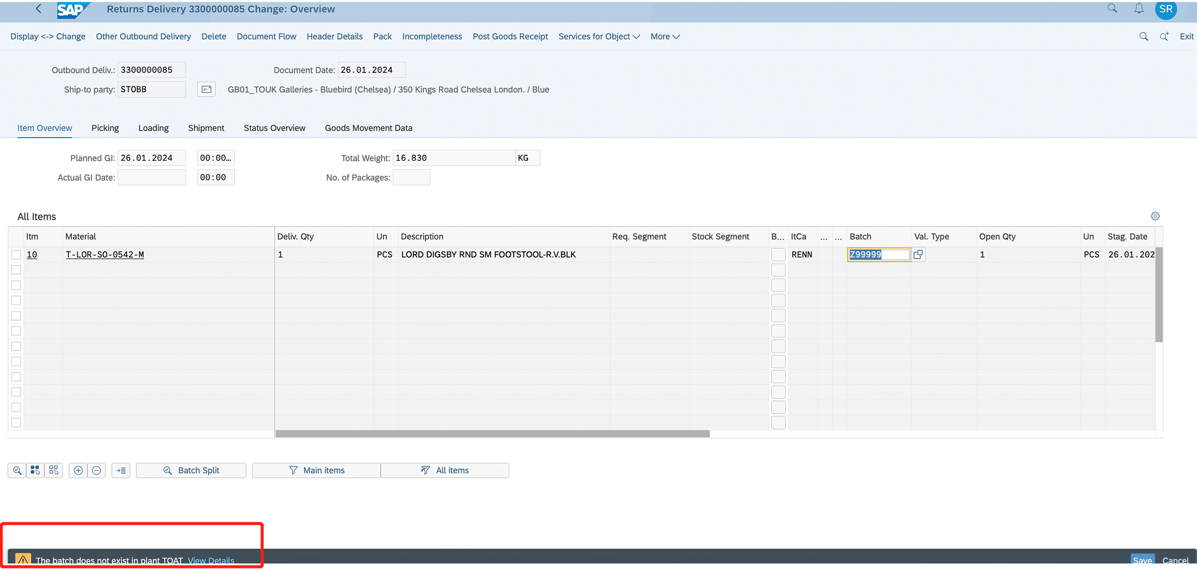 If there is a Red Reminder: The batch does not exist in plant TOAT as below