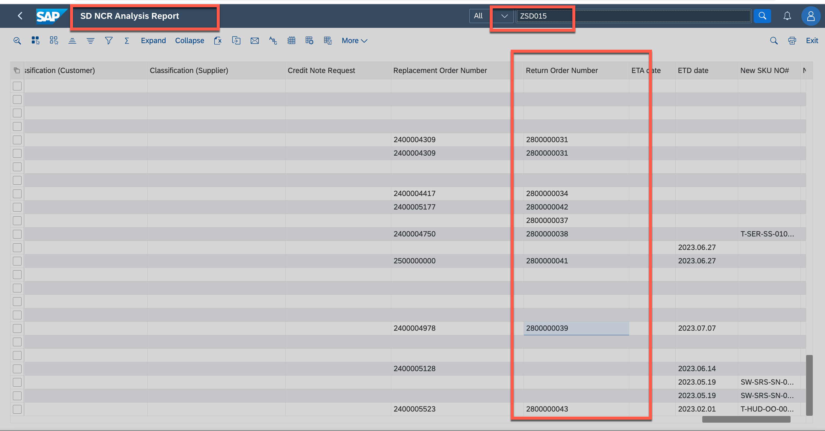 2. if forgot the NCR sales return number, could go to ZSD015, NCR Analysis report to check