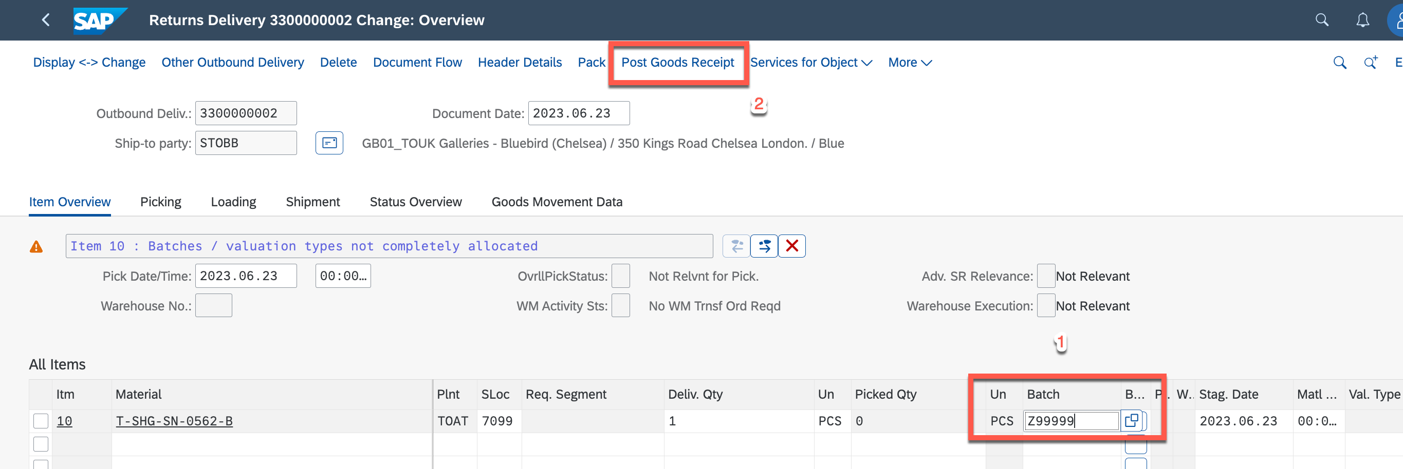 After created a sales return order, need to post goods receive to collect the goods back to warehouse