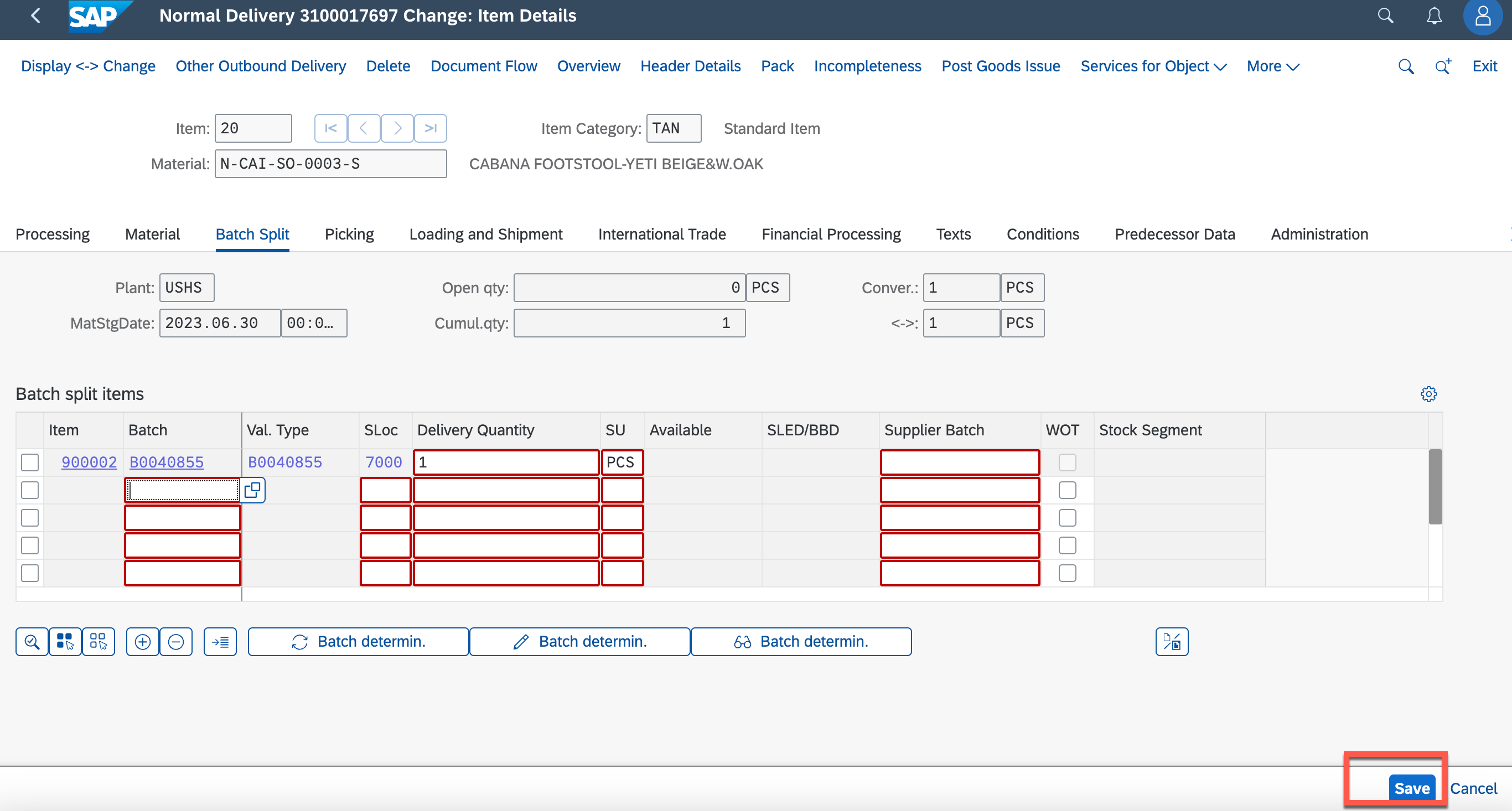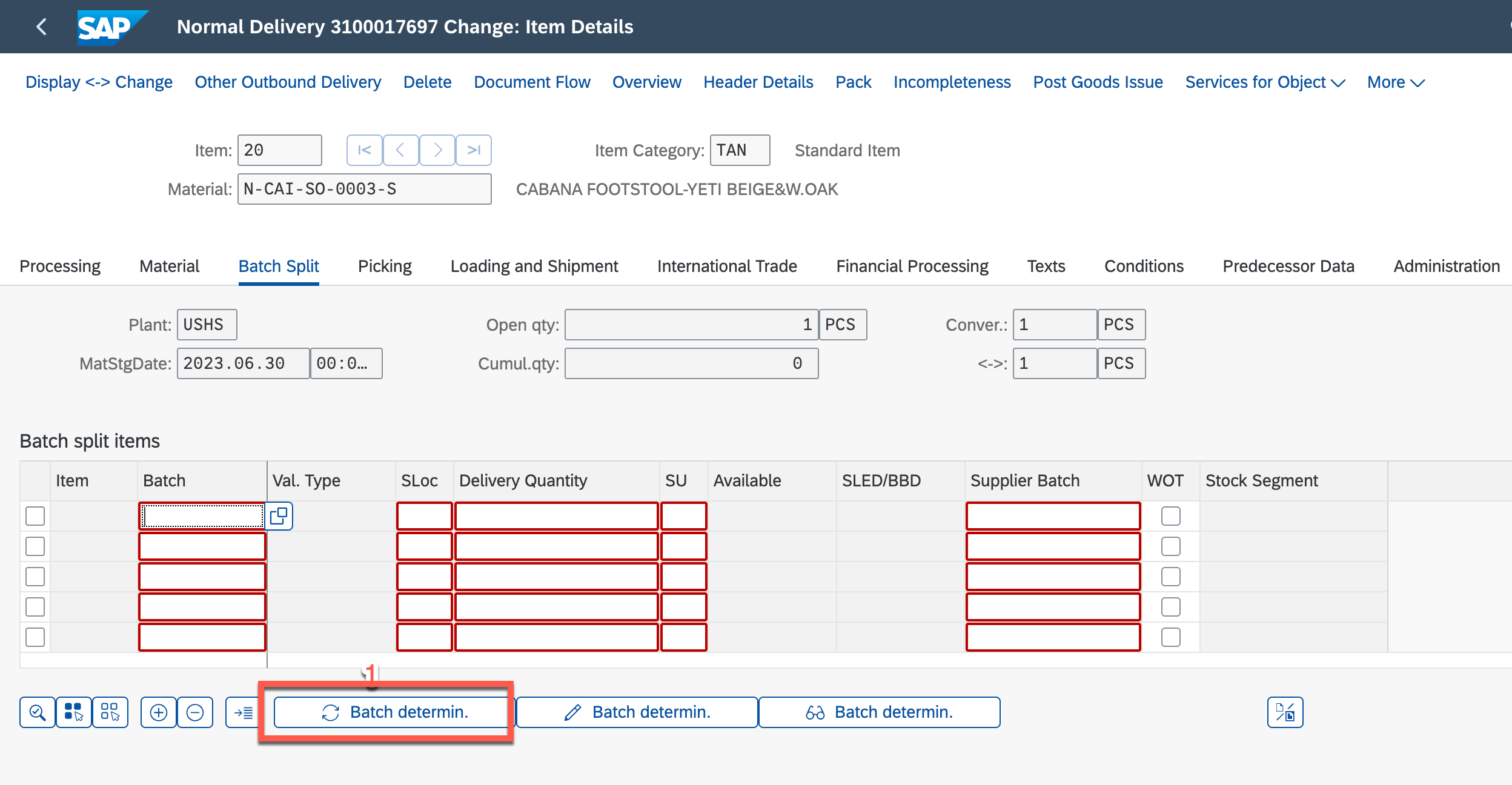 SAP-SD: TMS to assign the batch to a DN