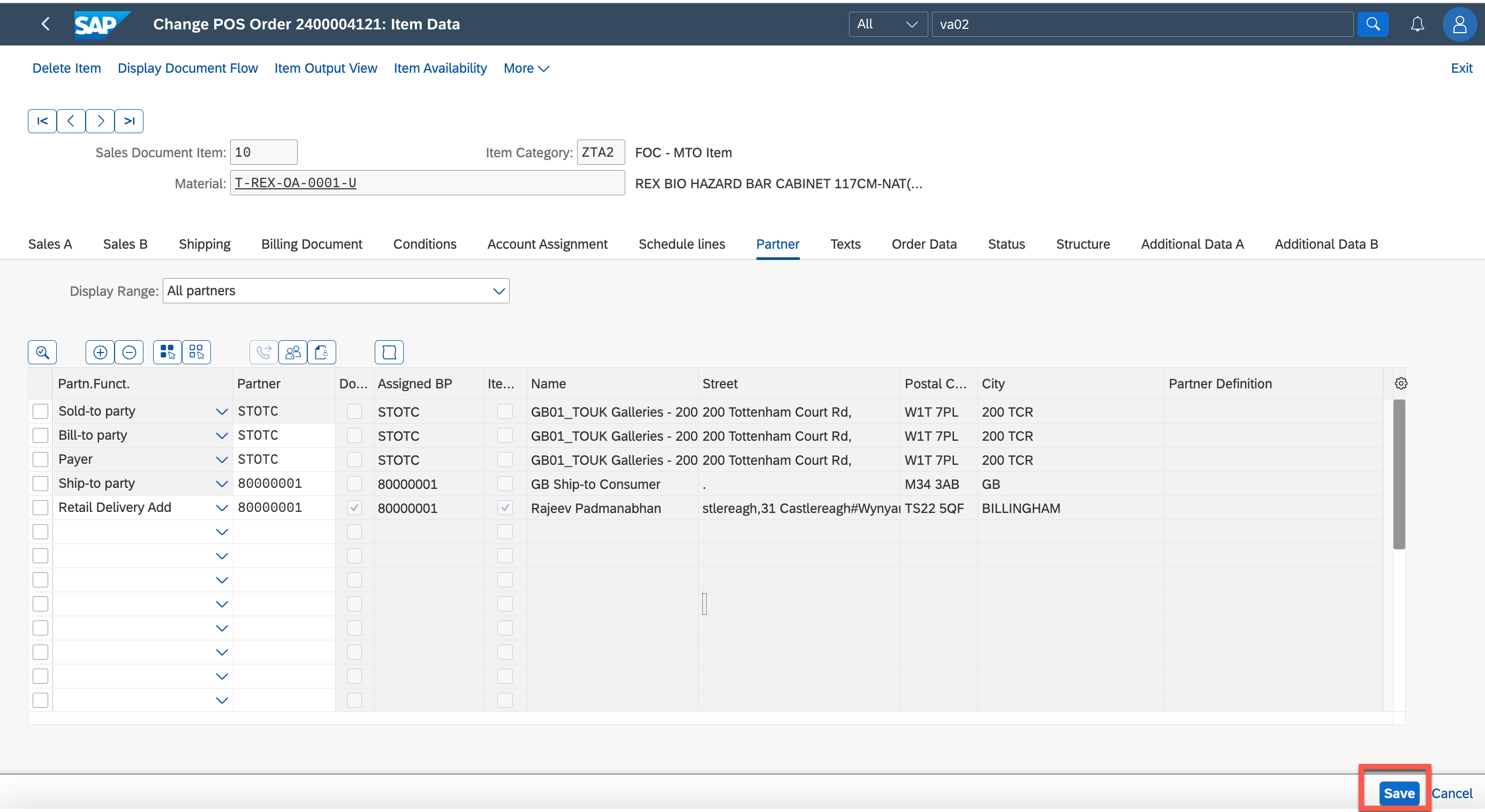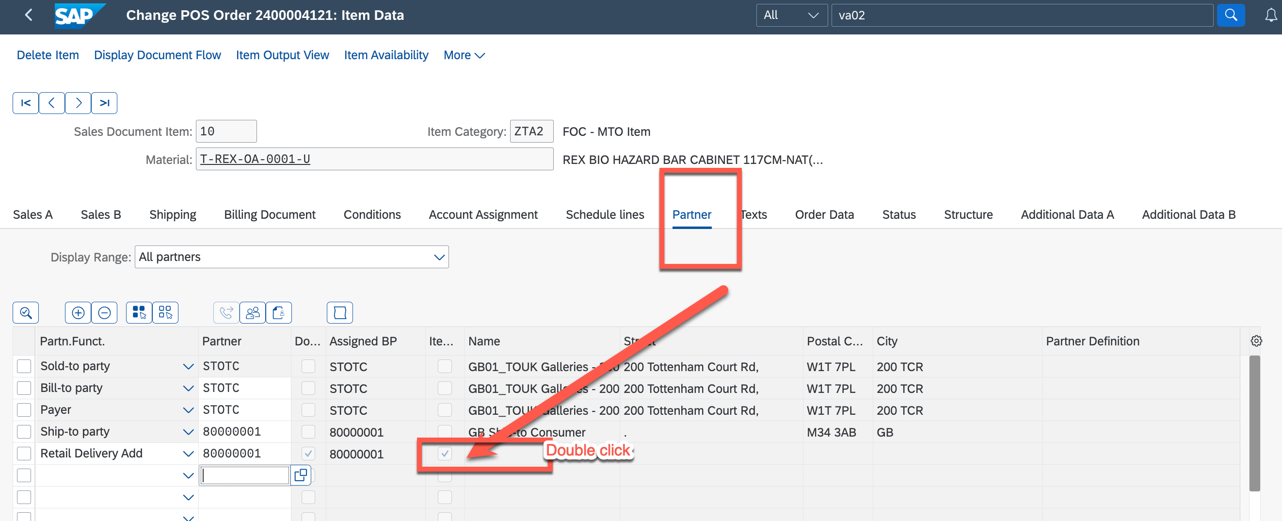 SAP-SD:add customer info into Retail / NCR SO add customer info into Retail / NCR SO 1. get SAP SO 2. GO TO SO change 3. go to partner 4. add address and save