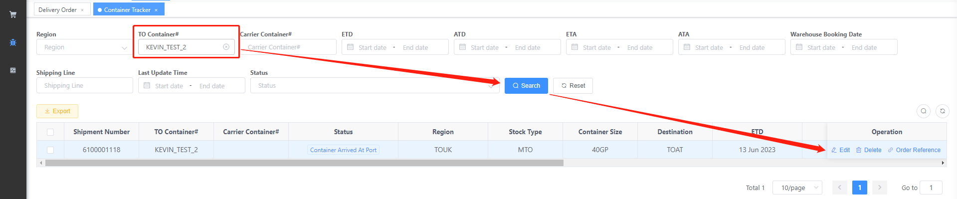 1.1. Find the container that needs to be booked.