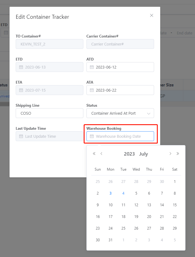 1. Book a "Warehouse Booking" Date