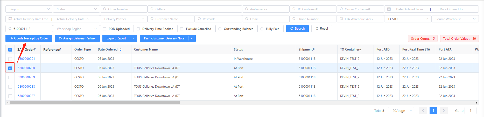 Book a "Warehouse Booking" Date & Receive goods