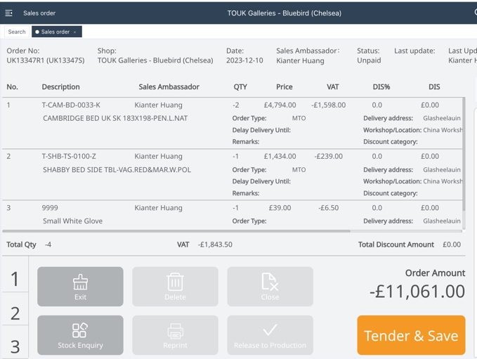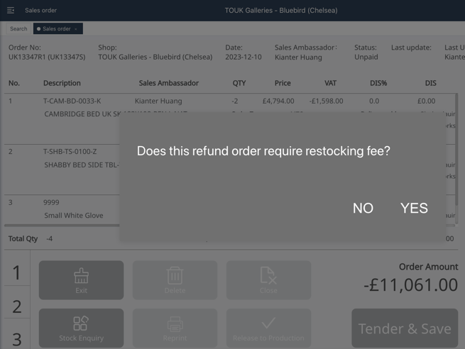 US-POS: Full Refund to a POS order Full Refund to a POS order, it is apply for all the status except after Delivered 1. Process Rerund button and furthe confirm 2. select if need the restocking fee 3. go to tender and pick the tender 4. confirm