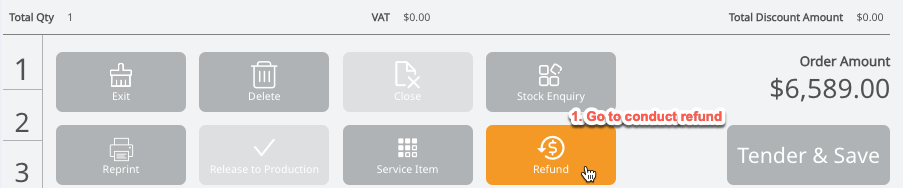 Step4: Proceed to refund the order: select Refund → confirm refund → confirm no restocking fee