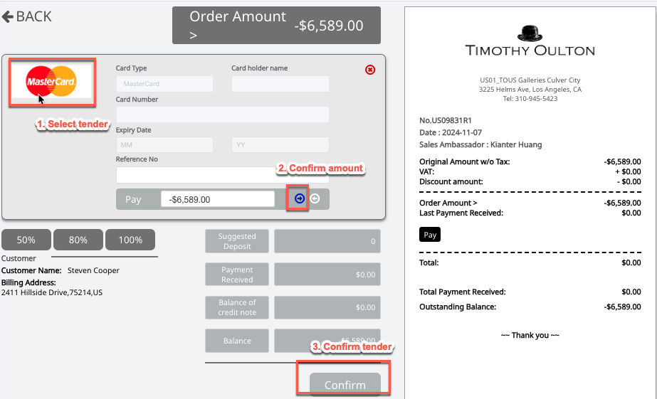 Step5: Select the refund tender for the customer and confirm